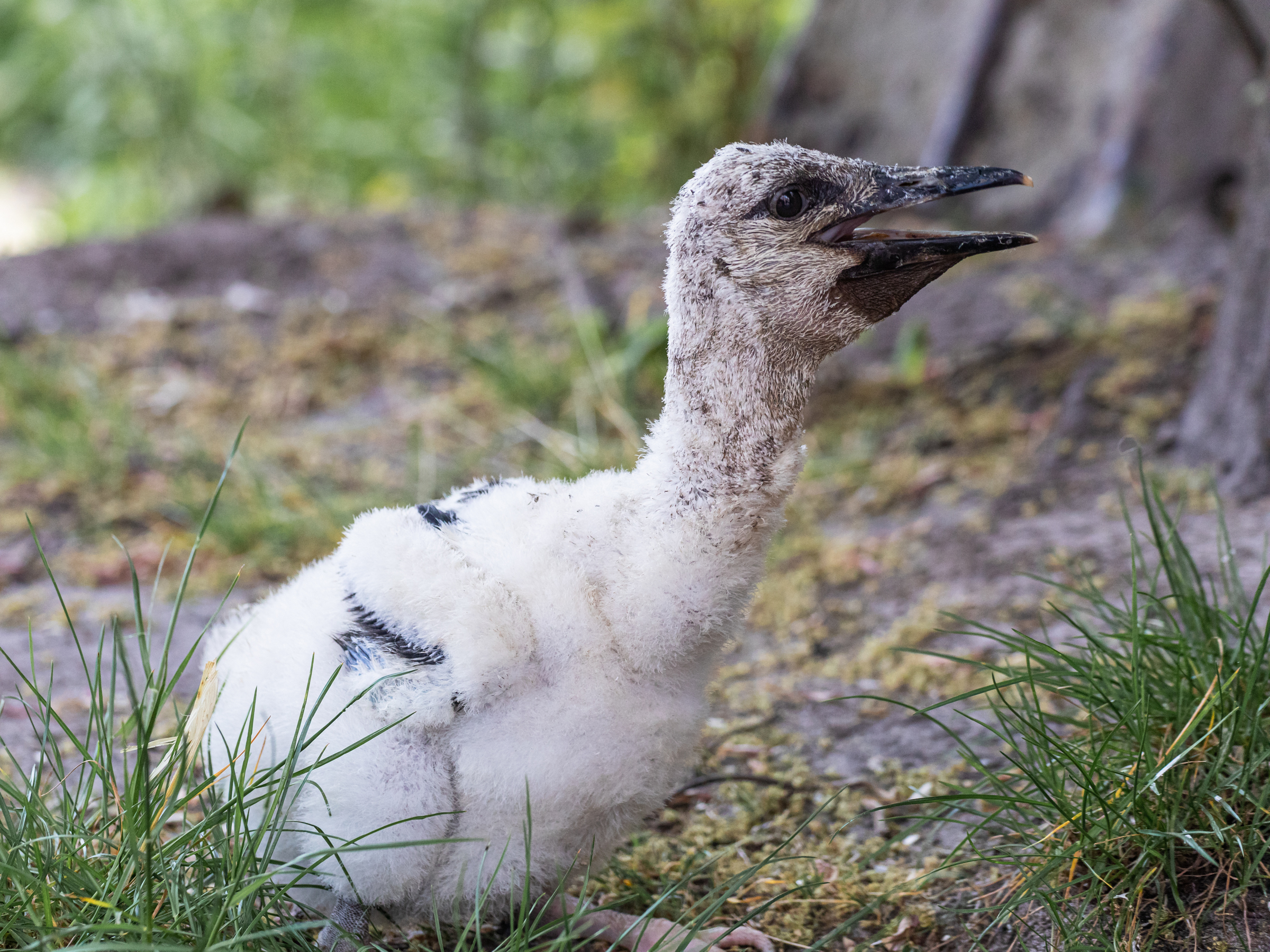 In vielen Nestern sah man nun auch bereits die ersten Jungstörche ihre Köpfe recken. Vermutlich hat die langanhaltende Trockenheit, kombiniert mit Nachtfrösten Mitte Mai jedoch für eine Nahrungsknappheit gesorgt, die zahlreiche Jungstörche das Leben gekostet hat. Sterben die Tiere im Nest, oder sind sie so gut wie tot, werfen die Elterntiere sie in der Regel hinaus. Mehrere tote Jungstörche wurden leider von den Tierpflegern unter der großen Eiche gefunden. Ein Storch lebte noch und wurde von der Tierpflegerin Insa Röttgers umsorgt. Von der ersten Fütterung an hat der kleine Storch selber gefressen und sich relativ rasch erholt. In Anlehnung an eines der ersten Zootiere vor 70 Jahren – den Weißstorch „Willi“ – wurde der kleine Weißstorch nun anlässlich des 70jährigen Zoojubiläums, welches der Tierpark eigentlich in diesem Jahr feiern wollte, auf „Willi-Walter“ getauft.