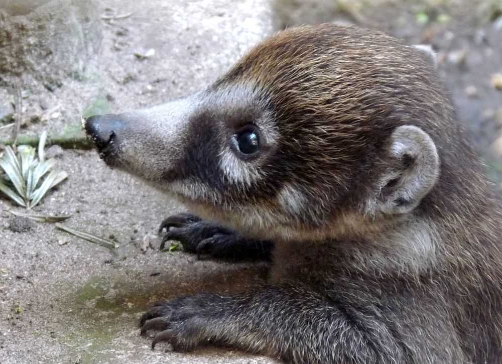 Die öffentlichen Nasenbärenfütterungen finden täglich um 10.50 Uhr und 16.45 Uhr statt.Foto (Melanie Schaten): Reviertierpflegerin Melanie Schaten hat ihre Kamera im richtigen Moment dabeigehabt und einen kleinen Nasenbären vor die Linse bekommen.