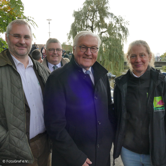 Wir sind dankbar für den inspirierenden und bereichernden Austausch mit Bundespräsident Frank-Walter Steinmeier an Bord unseres Zooschulbootes. Im Rahmen der von uns organisierten Zooschultour hatten unser Zoodirektor Dr. Nils Kramer und unsere Zooschulleiterin Ina Deiting gemeinsam mit ihm und den Schülerinnen und Schülern des EGN die Gelegenheit, die Wasserstadt Nordhorn aus einer ganz neuen Perspektive kennenzulernen. Mit der Vechte-Ranger-Tour bieten wir – als Arten- und Naturschutzzentrum, sowie als außerschulischer Lernort – faszinierende Einblicke in die bewegte Geschichte der Stadt Nordhorn und die Bedeutung der Vechte – sei es als lebenswichtige Wasserader, wertvoller Lebensraum oder auch als potenzielle Gefahrenquelle.
