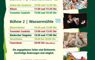 Am Samstag, den 20. September 2025, erwartet euch ein buntes Live-Programm auf gleich zwei Bühnen: 🌿 Auf der Vechtewiese geht es ebenfalls hoch her: Diese erprobte Partywiese bietet Unterhaltung für die ganze Familie, von wilden Auftritten bis zur magischen Zauberei. 💧 An der Wassermühle wird zum allerersten Mal musikalisch eingeheizt – genießt Livemusik in dieser einzigartigen Kulisse an der gemütlichen [...]