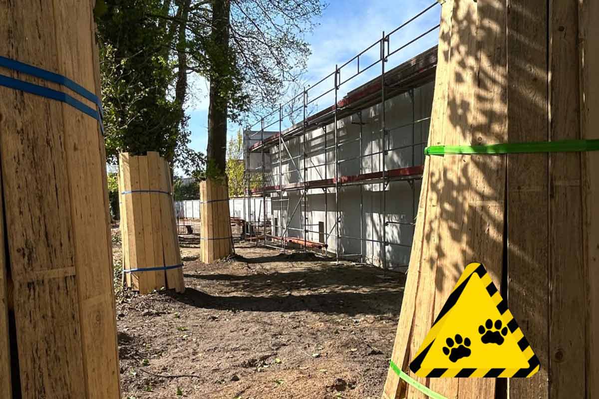 Deshalb erhalten die Bäume innerhalb und rund um die neue Leopardenanlage derzeit einen besonderen Schutz. Mit stabilen Holzkonstruktionen und Schutzelementen stellen wir sicher, dass die Bäume während der Bauarbeiten keinen Schaden nehmen. So bleiben sie nicht nur für die Amurleoparden ein wichtiger Teil des natürlichen Lebensraums, sondern bieten auch vielen wildlebenden Tierarten im Tierpark ein Zuhause.