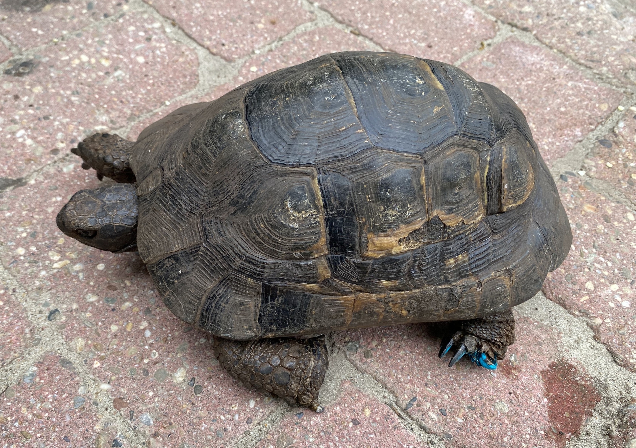 Am 1. Mai wurde in Nordhorn eine große Landschildkröte gefunden und in der Auffangstation des Tierparks abgegeben. Es handelt sich um ein agiles Weibchen, das sich vermutlich beim Schönwetterausflug am 1. Mai etwas verlaufen hat. Das sicher schon ältere Tier ist wohlauf und würde sich bestimmt freuen, wieder in seinen heimischen Garten zu kommen.