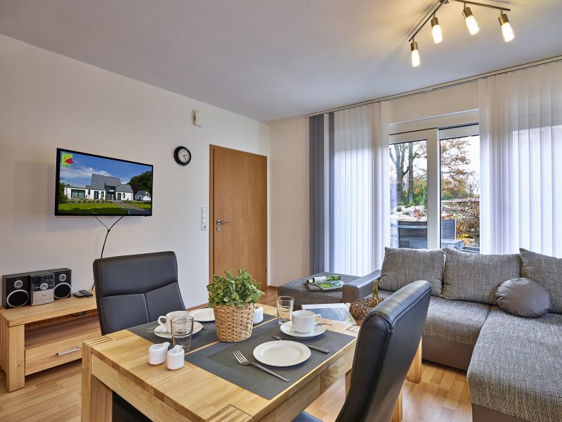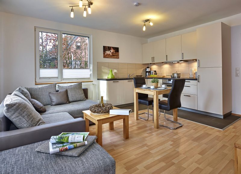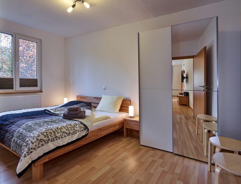 - Wohnung für 2 Personen plus eine Überbelegung (dafür steht ein Schlafsofa zur Verfügung, Bettwäsche ist in der Wohnung vorhanden)
