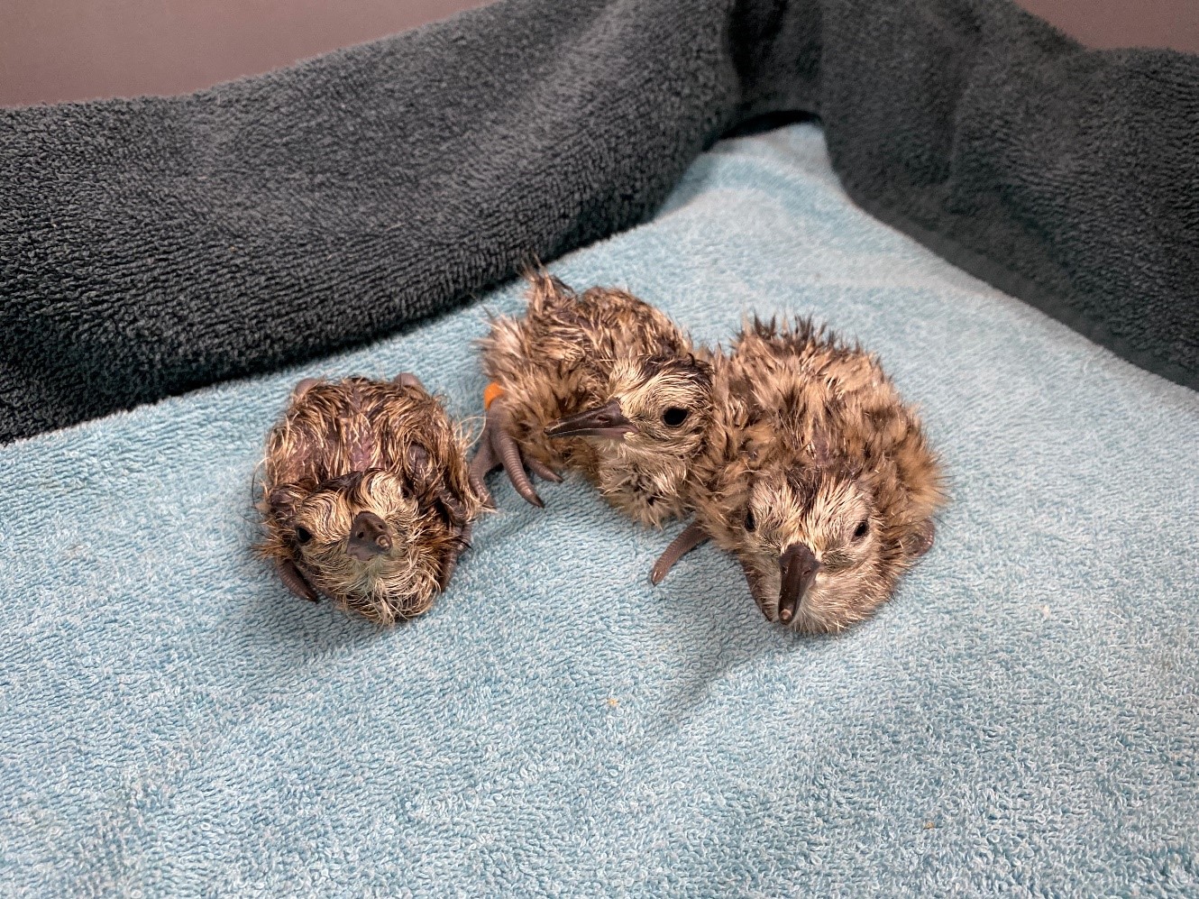 Drei im Tierpark Nordhorn frisch geschlüpfte Brachvogelküken.