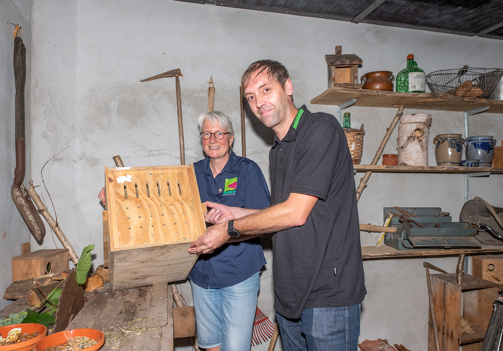 Aus diesem Grund waren im Vorfeld der Eröffnung des Nachttierhauses auch die Betriebsratsvertreter der Neuenhauser Group bereits fleißig. Rund 100 Schlafkästen für die Gartenschläfer wurden zusammengehämmert und geschraubt. Diese sollen im Rahmen der Forschungsarbeit des Tierparks dazu dienen, mehr über die Gartenschläfer zu erfahren.