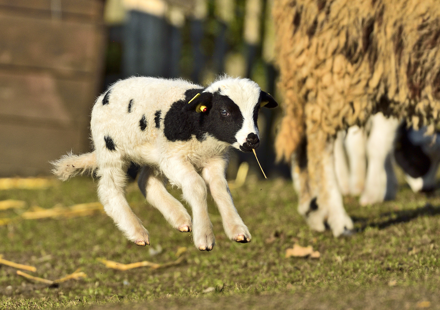 Bunt gescheckt sind die Lämmer der Jakobschafe, auch Vier- oder Mehrhornschafe genannt.