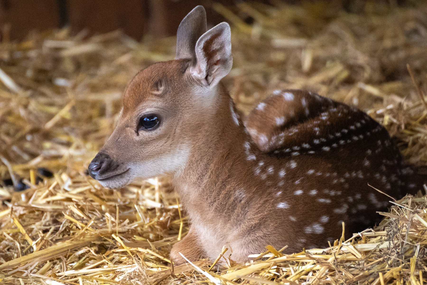 Ein besonderer Grund zur Freude war die Geburt von zwei Vietnam-Sikakälbern. Die beiden kleinen Kälber sind in ihrem gefleckten Fell nicht nur besonders niedlich anzuschauen, sie tragen mit ihrer Geburt zur immens wichtigen Arterhaltung der Vietnam-Sikahirsche bei. Diese Unterart ist laut der Roten Liste des IUCN in freier Wildbahn bereits ausgestorben –vor allen Dingen durch illegale Jagd und Lebensraumzerstörung. Man findet sie nur noch hinter den Gattern von drei vietnamesischen Nationalparks, einer Hand voll Hirschfarmen und ein paar Zoos in Europa und Nordamerika. Aufgrund dessen wurde diese Art in das Europäische Erhaltungszuchtprogramm (EEP) aufgenommen und das Fortbestehen der Art wird international koordiniert. Geboren wurde der kleine Hirsch „Mondkapje“ am 20. März von „Yellow“. Das Weibchen „Jola“ brachte ihr Kalb am 30. März zur Welt. Bisher ist das Geschlecht unbekannt, da die Mutter ihren Nachwuchs gut verteidigt und die Tierpfleger daher noch keine Gelegenheit für einen ersten Check hatten. Wie alle anderen Jungtiere in diesem Jahr, wird aber auch hier der Name mit einem „M“ beginnen.