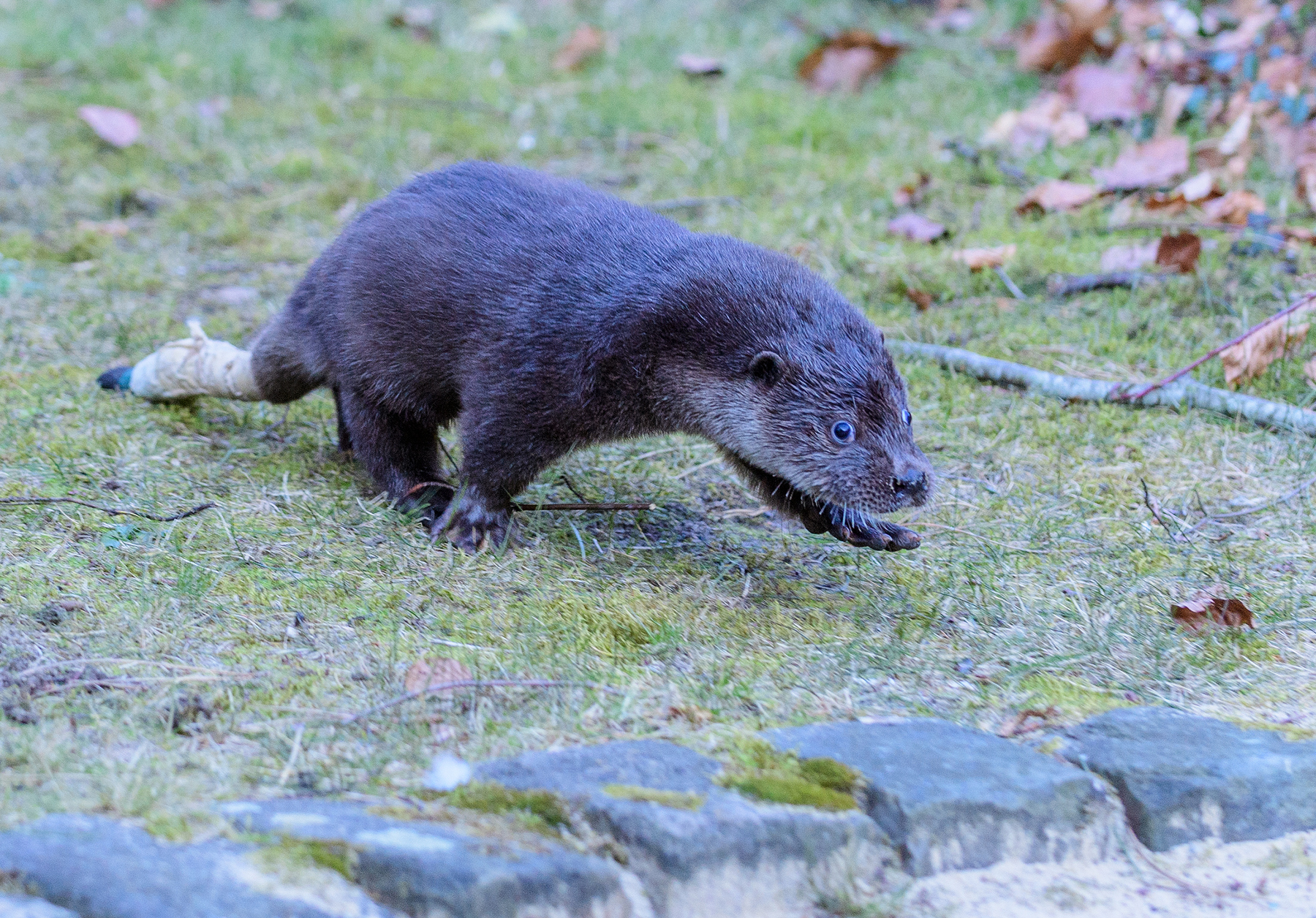 Der junge Otter „Otto“ bedurfte intensiver medizinischer Betreuung, da er zahlreiche Verletzungen aufwies. Bis zur vollständigen Heilung muss sein Schwanz noch verbunden bleiben. (® Franz Frieling)
