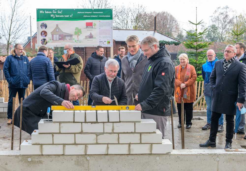 Architekt Hermann Suntrup hat die Planungen für den Aufbau des alten Gemäuers an seiner neuen Wirkungsstätte im Tierpark übernommen. Das Schwestergebäude zur historischen Schmiede stand wie die Schmiede auf einem Bauernhof in Bimolten, wurde dort aber schon vor längerer Zeit abgebaut und eingelagert. Die Fundamente für das insgesamt 70.000 bis 100.000 Euro teure Projekt wurden bereits gelegt. Unter Beteiligung der kompletten Grafschafter Führungsriege der Neuenhauser Gruppe legten die Geschäftsführer Lutz Wolf und Michael Grunwald mit dem Architekten Suntrup und Zoodirektor Dr. Nils Kramer am vergangenen Donnerstag den Grundstein für die Bastelwerkstatt und mauerten dabei eine Zeitkapsel ein. Der weitere Aufbau der Werkstatt ist für das kommende Jahr geplant. Unbeeinflusst davon hält der Familienzoo natürlich an dem Bauprojekt für die bedrohten Amurleoparden fest. Hier wird es im kommenden Jahr bereits zu einem sichtbaren Baufortschritt kommen! Mit einer Fertigstellung der neuen Anlage ist aufgrund der coronabedingten Verzögerungen nicht vor 2023/2024 zu rechnen.