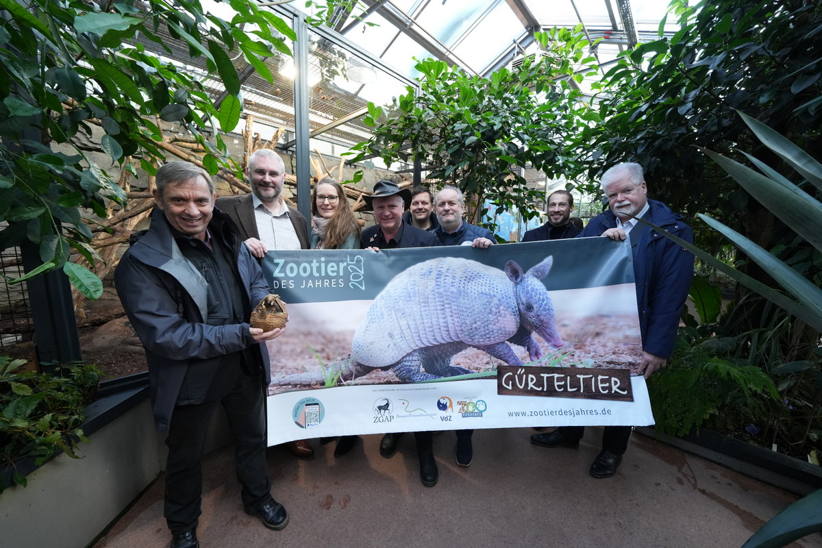 Der Tierpark Nordhorn ist mit rund einer halben Millionen Gäste jährlich der drittgrößte Zoo Niedersachsens. Die 200 Mitarbeiter kümmern sich um die Gäste und die rund 2500 Tiere in 100 Arten. Als regionales Arten- und Naturschutzzentrum bewirtschaftet der Familienzoo rund 170 Hektar seltener bedrohter Lebensräume selbst, über die Ökologische Station werden sogar rund 40.000 Hektar dieser Lebensräume wie Hochmoor, Hutewald oder Wachholderheiden betreut. Der Nordhorner Zoodirektor Dr. Nils Kramer ist Mitbegründer der „Zootier des Jahres“-Kampagne und Vizepräsident der Deutschen Tierparkgesellschaft (DTG). In Stuttgart stellte er nun zusammen mit der Projektkoordinatorin Dr. Viktoria Michel das Zootier des Jahres 2025 der Öffentlichkeit vor. Er betonte in seiner Vorstellung die Bedeutung der Zoos für die Erforschung und den Artenschutz. „Wir wissen bisher sehr wenig über die Lebensweise der verschiedenen Gürteltiere, mit ihrer Forschung können Zoos hier wichtige Erkenntnisse beitragen!“ so Nils Kramer. „Artenschutz in Menschenhand und in den angestammten Lebensräumen müssen Hand in Hand gehen, nur dann sichern wir nachhaltig die Zukunft dieser Tiere!“