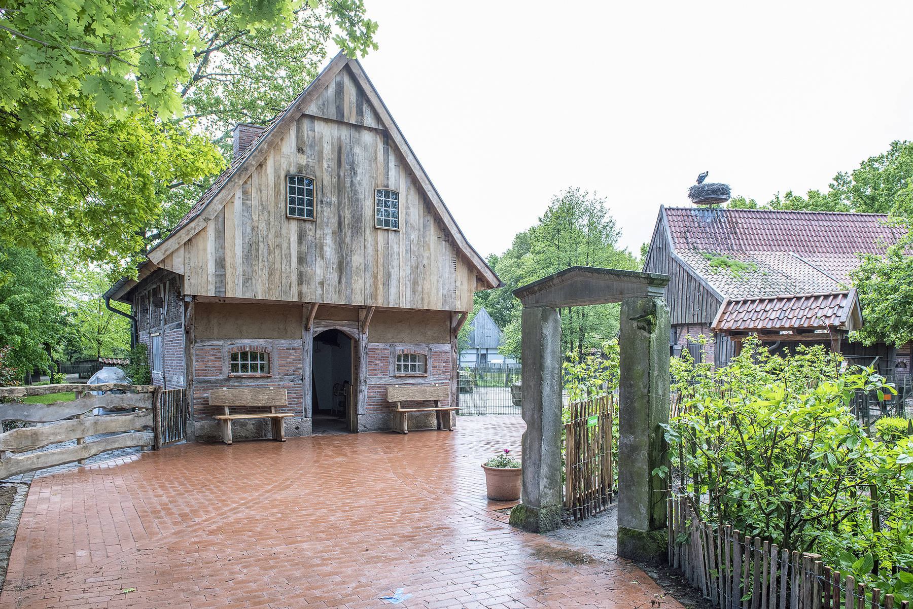 Das Vechtedorf im Familienzoo ist am gestrigen Mittwoch um ein weiteres historisches Gebäude gewachsen. Etwa zwei Jahre haben die Arbeiten an der historischen Schmiede im Tierpark gedauert. Ursprünglich stand das etwa 300 Jahre alte Fachwerkgebäude als Backhaus auf dem Hof der Familie Groven. Das in einem Waldstück eingewachsene, stark verfallene Haus wurde von den Mitarbeitern des Tierparks sauber abgetragen, die Teile nummeriert und dann an neuer Wirkungsstätte in unmittelbarer Nähe zum historischen Vechtehof wiedererrichtet.