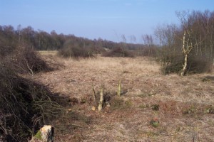 Vergleichbare Arbeiten wurden auch bereits durch freiwillige Helfer von den Naturschutzverbänden unter Anleitung durch den Jagdpächter ausgeführt. Mit dabei waren auch Arbeitskräfte, welche durch den Tierpark Nordhorn zur Verfügung gestellt wurden. Sogar der Leiter des Tierparks war mit im Einsatz. Das kritische Arbeitsfeld mit den nicht leicht zu begehenden Torfböden fand auch durch die Informationen und Erläuterungen durch den Sachbearbeiter (Jagdpächter) Verständnis und guten Einsatz. Neben den Freistellarbeiten wurde an verschiedenen Stellen die Torfschicht unter der Vegetationsdecke freigelegt um nährstoffarmes Niederschlagswasser festzuhalten und eine Anregung zur Entwicklung von hochmoortypischen Pflanzen (Torfmoose, Wollgras und Zwergstraucharten) zu schaffen.