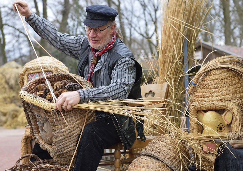Die Teilnehmer des diesjährigen Kurses werden ihre neu erlernten Fähigkeiten und Ergebnisse allen interessierten Zoobesuchern am Samstag, den 03. März in der Zeit von 11 bis 17 Uhr im Familienzoo vorführen. Johann Wigger wird zudem etliche Korbmodelle mitbringen und Informationen zu Technik und Material geben. Der Berufsimker John Driebergen wird den kleinen Korbflechtertag wieder bereichern, in dem er die Kunst des Bienenkorbflechtens vorführt. Er ist einer der wenigen, die das alte Handwerk noch ausüben. Neben der Vorstellung verschiedener Modelle wird er live zeigen wie ein echter Bienenkorb geflochten wird.
