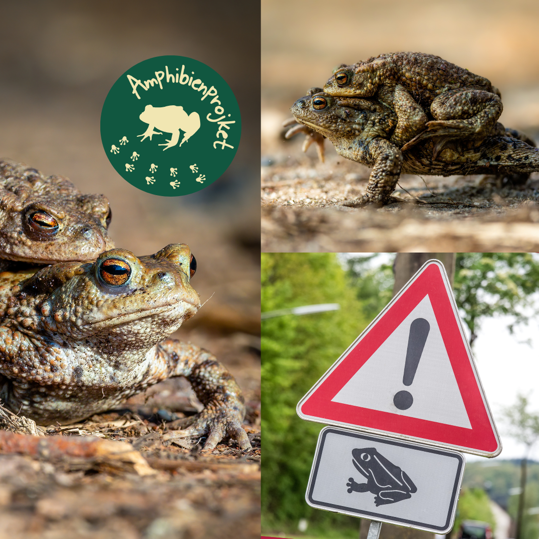 Bei Krötenwanderung denken wir in der Regel an wenige Tage im Frühjahr, an denen massenhaft Kröten, aber auch Frösche auf Straßen und Wegen zu finden sind. Sie kehren in großer Zahl in das Gewässer zurück, in dem sie einst selbst geschlüpft sind. Häufig handelt es sich bei den ersten Tieren um Erdkröten, die besonders früh im Jahr loswandern und bis zu 5 km zu ihrem Laichgewässer zurücklegen. Sie wandern oft synchron, sodass besonders viele Tiere gleichzeitig auf kleinem Raum unterwegs sind. Bei den Erdkröten kann man außerdem oft beobachten, wie die kleineren Männchen per Anhalter auf dem Rücken der großen Weibchen mitreisen.