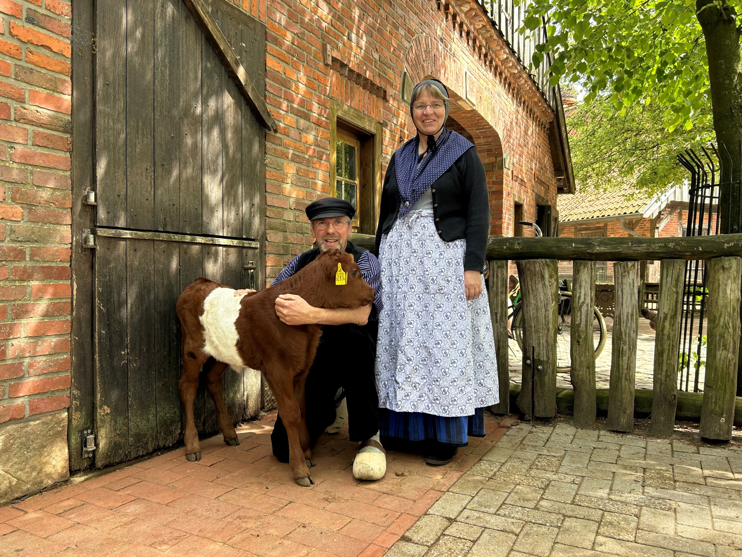 Beim Fototermin zu ihrer Taufe wurde sie kurzzeitig von „Dientje“ getrennt. Wie alle Kühe passt die Mutterkuh nämlich besonders gut auf ihren Sprössling auf und hätte das Kälbchen beim Fotoshooting wohl nicht von ihrer Seite weichen lassen. So konnten „Bauer Jan“ und „Tante Lisbeth“ die kleine Kuh in Ruhe taufen.