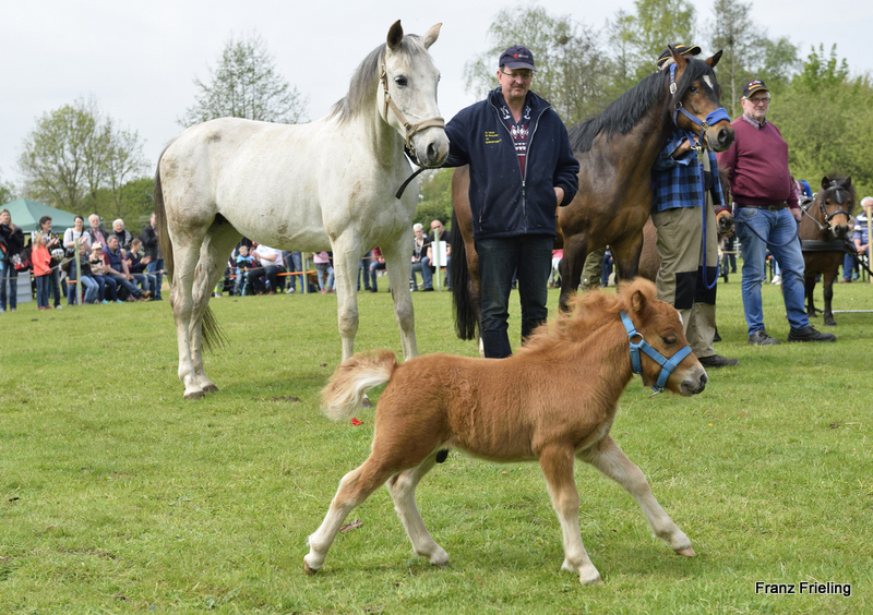 Umso mehr freuten sich am vergangenen Sonntag die Zoomitarbeiter und am Ende des Tages 6240 Besucher über 39 Pferde zu Gast in den unterschiedlichsten Größen und Farben. Von den kleinen Minishettys bis zu den schwergewichtigen Arbeitspferden war alles Mögliche an diesem Tag in der unteren Vechtewiese vertreten. Während die Ponys vom Ponyhof Niers vom Twist ab 10 Uhr geduldig ihre Runden mit den zahlreichen kleinen Besuchern drehten, zeigten sich die Pferde der IG Arbeitspferd, die Isländer vom Islandpferdehof Hanenland, die Dülmener Wildpferde des Wildpferdevereins, die Friesen vom Züchter Siegfried Engbers aus Uelsen, die Tinker vom Tinkerhof in Hoogstede und die Quarterhorses der Züchterin Kerstin Klus aus Nordhorn im Wechseln und gemeinsam im großen Vorführrund mitten in der Wiese. Heimlicher Star war hierbei das kleine Minishetty-Hengstfohlen von der Familie Bonhorst aus Nordhorn.