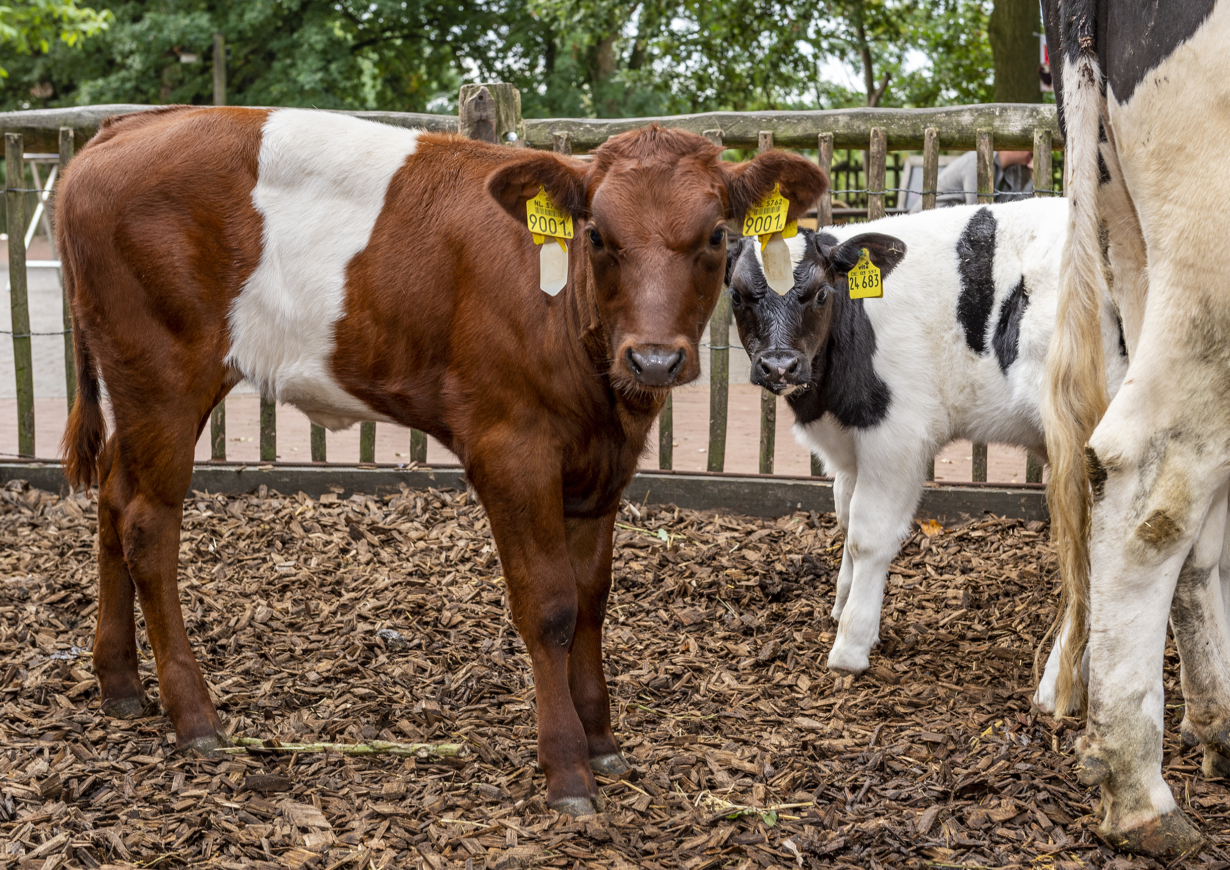 Da mit den Altdeutschen Niederungsrindern bereits eine schwarzweiße Rasse am Vechtehof lebt, war der Familienzoo wochenlang auf der Suche nach einem rotweißen Tier. Mit „Dientje“ zog nun das erste rotweiße Lakenvelder Rind auf dem Vechtehof im Tierpark ein. Die Altdeutsche Kuh „Fraukje“ und ihr Bullenkalb „Ingmar“ haben die kleine Niederländerin gut aufgenommen. Sie darf sich sogar gelegentlich gemeinsam mit „Ingmar“ an „Fraukje´s“ Euter bedienen!