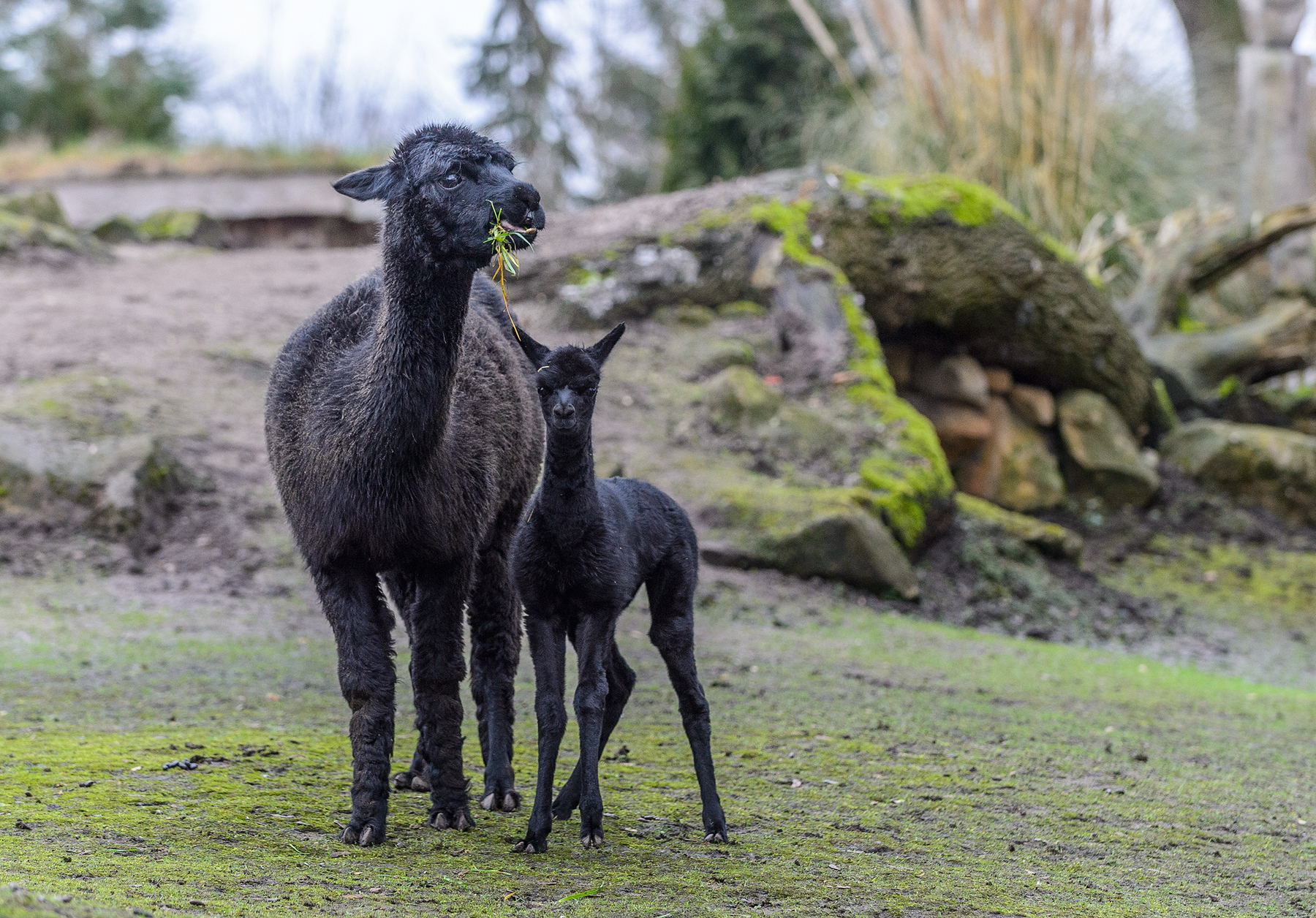 Ob nun frühreif oder nicht – sein erstes Fohlen ist wie er und seine Mutter pechschwarz, zuckersüß und erobert die Besucherherzen bereits im Sturm. Der stolze Vater hat weiter nichts mit seinem Sprössling zu tun. Das Fohlen folgt der Mutter auf Schritt und Tritt, interessiert sich aber auch bereits für die Besucher, die ihm und dem Rest der Alpakaherde in der Südamerikaanlage hautnah begegnen können.