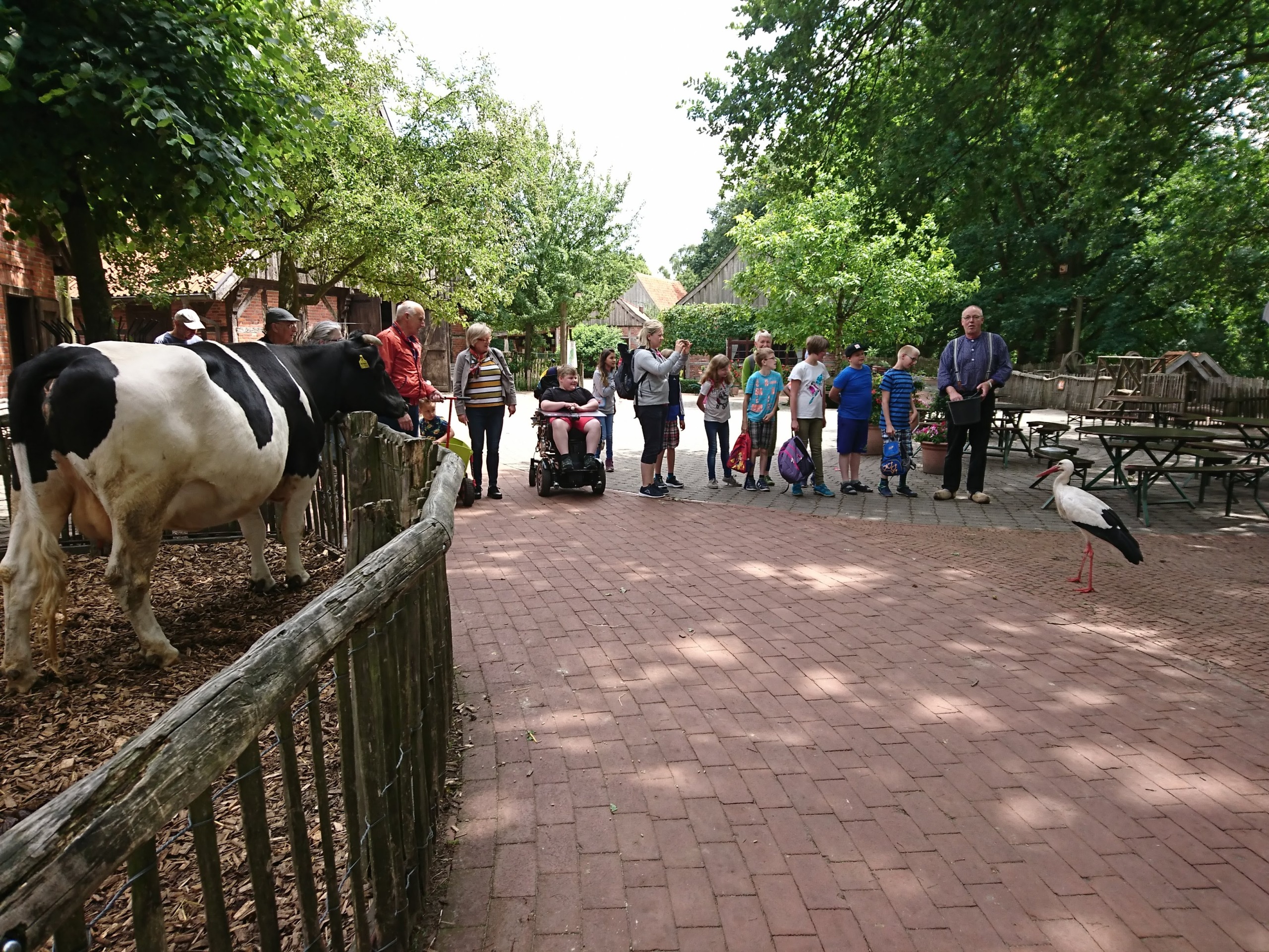 Damit die Fütterung auch gezielt erfolgt, füttert der Schaubauer des Nordhorner Familienzoo, Bauer Hinnerk, den Storch „Oma“ aus der Hand. Ein tolles Highlight für die Besucher. Deshalb bleibt „Oma“ für gewöhnlich den Winter über auch im Tierpark. Sie ist Freifliegerin und könnte jederzeit in den Süden mit den anderen Störchen ziehen, hat dies in den letzten Jahren aber nie gemacht. Warum sie diesen Sommer mit den anderen zusammen gestartet ist, bleibt ein Rätsel. Nun ist sie jedenfalls nach kurzer Abstinenz wieder auf dem Vechtehof im Tierpark Nordhorn angekommen und wird wie in den Vorjahren den Winter hier verbringen. Bauer Hinnerk freut sich jedenfalls: „Wir haben Oma schon etwas vermisst. Auf den Vechtehof gehört einfach ein Storch.“ Warum die Störchin nach kurzer Zeit umgekehrt ist, bleibt ebenfalls ein Rätsel. „Oma hat wohl auf dem Weg in den Süden gemerkt, dass es hier im Tierpark viel schöner ist!“