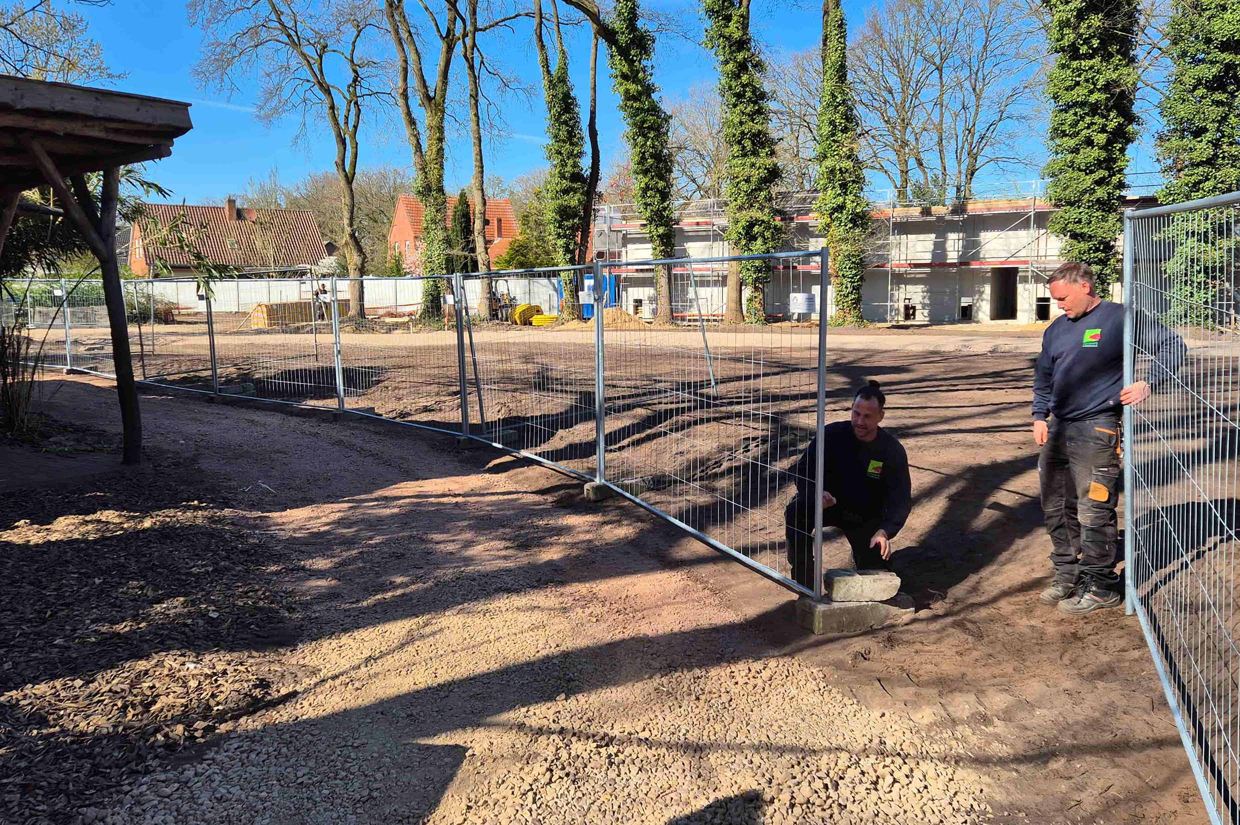 Zeit. Ab sofort führt ein provisorischer Rundweg direkt an der Baustelle der neuen Leopardenanlage entlang! Zwischen der Geier-Steinbockanlage und den Faultieren – vorbei an der neugestalteten Wolfsanlage – besteht nun die Möglichkeit ganz besondere Einblicke in das Baugeschehen zu bekommen. Hier können die Zoobesucher nun mit eigenen Augen sehen, wie Stück für Stück das neue Zuhause für die Amurleoparden Form annimmt.