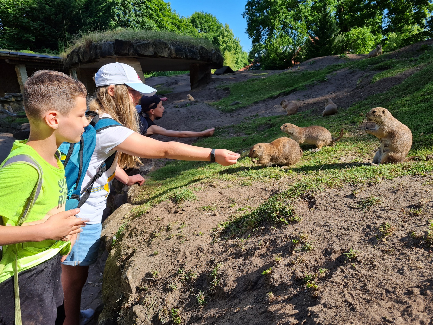 Entlang eines schönen Bachlaufes gelangt man direkt hinter dem Eingangsbereich zu der Kolonie Präriehunde.
