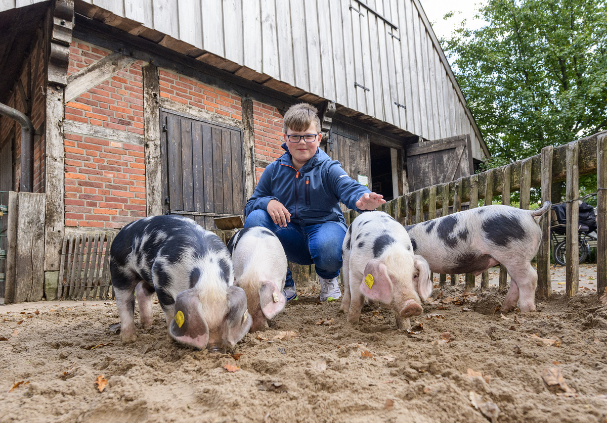 Auch heimische regionale Nutztierrassen können vom Aussterben bedroht sein. Das Bunte Bentheimer Schwein ist so eine Rasse, die vor gar nicht allzu langer Zeit kurz vor dem Aussterben stand. Seit 20 Jahren wird dank des im Tierpark Nordhorn gegründeten „Vereins zur Erhaltung des Bunten Bentheimer Schweins e. V.“ aktiv etwas für die Erhaltung dieser wertvollen Genressource getan. Und dies mit Erfolg, denn die Bestände sind wieder stark gestiegen. Und auch wenn es auf den ersten Blick widersprüchlich klingt: Jeder kann mithelfen diese faszinierenden Tiere zu schützen – das Motto heißt „Erhalten durch Aufessen“. Früher war das Bunte Bentheimer Schwein, dessen Anfänge der Zuchtgeschichte auf die Mitte des 19. Jahrhunderts datiert werden, ein weit verbreitetes Schwein auf den Bauernhöfen. Mit seinem freundlichen, genügsamen Wesen und seiner bunten Flecken war es insbesondere bei den Bauersfrauen, die sich vorwiegend um die