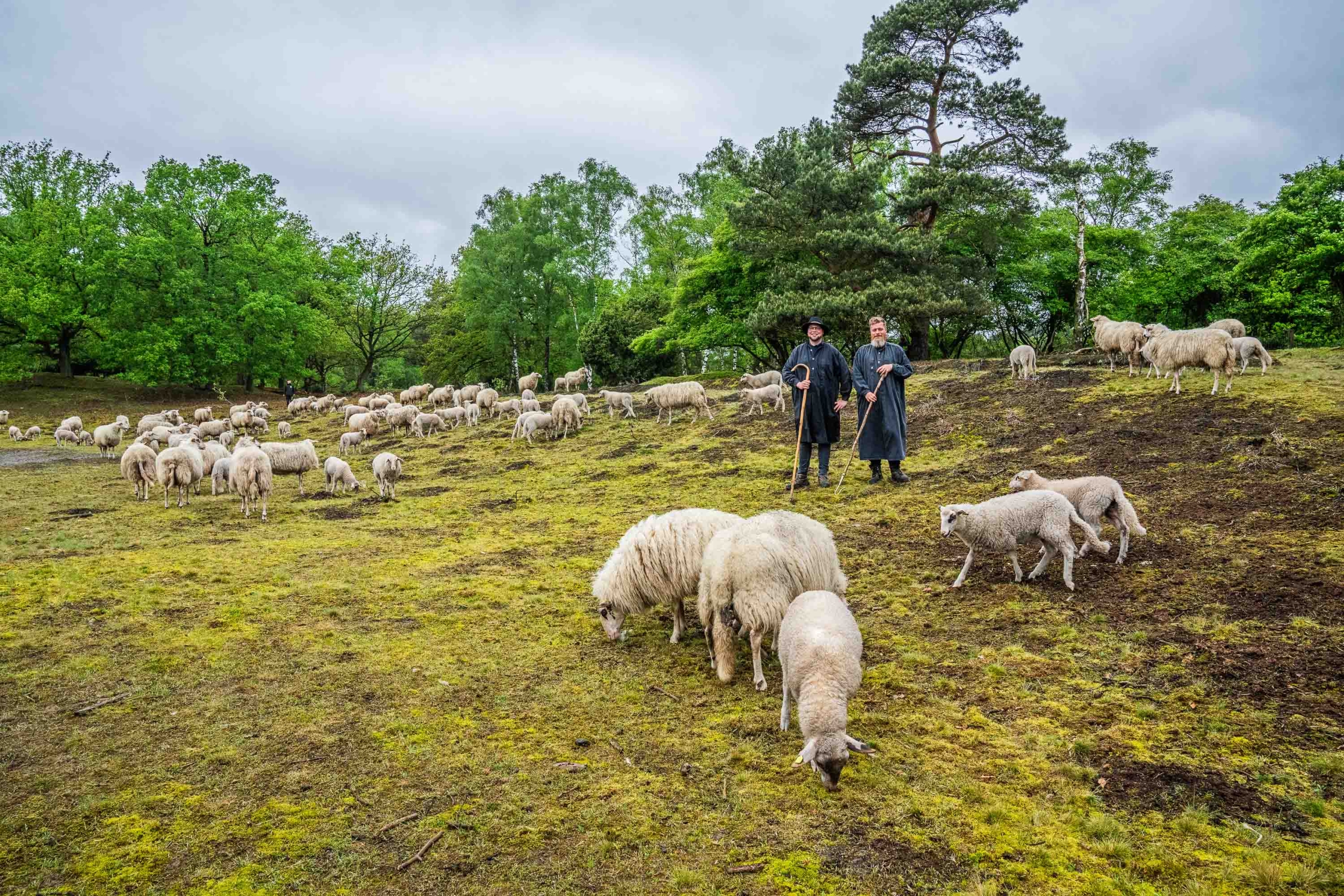 Mit der Ankunft von fast 60 Mutterschafen und 100 Lämmern der Bentheimer Schafe im Naturschutzgebiet Tillenberge beginnt offiziell die Weidesaison für die wolligen Naturschützer. Am Freitag, den 03. Mai 2024 wurde die Ankunft der Tiere offiziell mit einem Schafauftrieb im Naturschutzgebiet Tillenbergener Wacholderheide gefeiert. Die Ablammzeit verbringen die weiblichen Bentheimer Schafe seit einigen Jahren im Schafstall am Kloster und Missionsgymnasium in Bardel. Dort bringen sie im Februar und März ihre Jungen zur Welt. Jetzt sind diese bereits so groß, dass sie ihre Mütter tatkräftig beim Beweiden verschiedener Naturschutzflächen unterstützen können. Von den Tierpark-Schäfern Henning Meyer und Ralf Nolten wurden die über 150 Bentheimer Schafe nun zuerst in das Naturschutzgebiet Tillenbergener Wacholderheide entlassen, welches der Tierpark Nordhorn neben viele anderen Flächen als regionales Arten- und Naturschutzzentrum betreut.