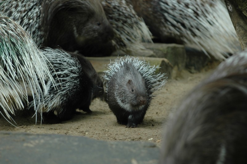 Stachelschweine kommen voll entwickelt aber mit ganz weichen Stacheln zur Welt. Diese erhärten innerhalb weniger Stunden.