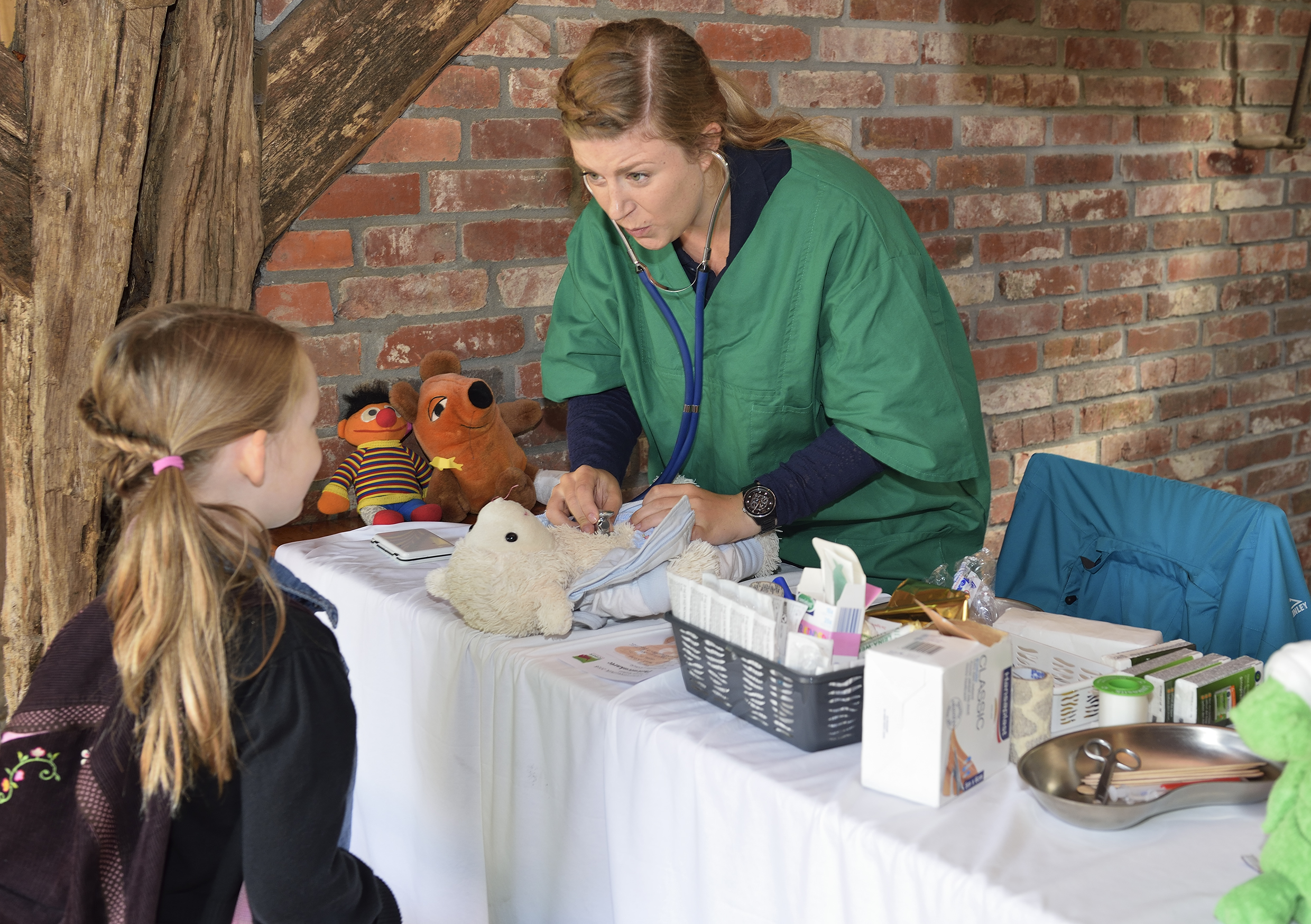 Zum dritten Mal in Folge findet die Stofftierklinik im Tierpark Nordhorn statt. Am Samstag, den 20. Mai 2017 können die Kinder von 10 bis 17 Uhr ihre kleinen und großen Stofftiere den echten Tierärzten vorstellen und sie wie in einer richtigen Klinik untersuchen lassen. Egal, ob der Teddy Bauchschmerzen hat, oder ein gebrochenes Bein, die Ärzte haben in der Stofftierklinik am Vechtehof für alle Beschwerden eine Lösung parat. Die pelzigen Patienten werden verarztet und bekommen die passenden Medikamente. Dabei läuft alles wie in einer echten Tierarztpraxis ab: In der Anmeldung werden die Patienten und die Stofftier-Eltern empfangen und nach ihren Beschwerden gefragt. Ausgestattet mit einer Patientenkarte wird noch kurz im Wartezimmer Platz genommen, bevor eine Helferin die Patienten zum Doktor führt. Bei Verdacht auf einen gebrochenen Arm oder ein gebrochenes Bein kommt das Stofftier in den Röntgenraum. Für kleinere Notfälle, sprich arg in Mitleidenschaft gezogene Kuscheltiere, steht sogar ein OP bereit. Mit Pflastern, Spritzen und Verband behandelt und mit Medikamenten versorgt, geht es Teddy & Co. dann schnell wieder besser.
