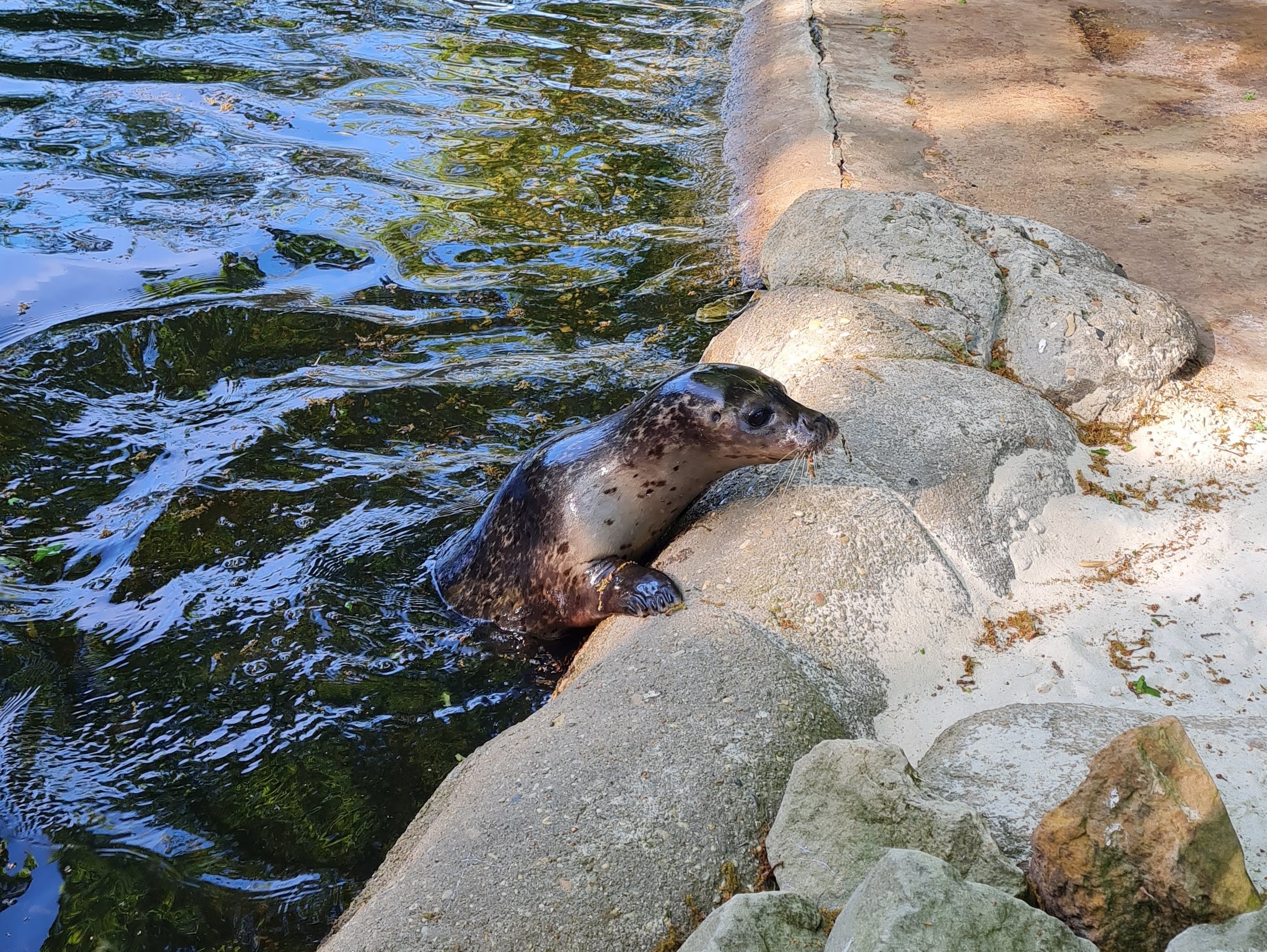 Mit Spannung wurde der Tag von den Zoomitarbeitern erwartet – am heutigen Donnerstag war es vor Öffnung des Zooeingangs dann endlich soweit: Ein neuer Seehund zog in den Tierpark Nordhorn! Nachdem der weibliche Seehund „Didi“ im Februar diesen Jahres verstarb, waren „Rita“ und „Jolo“ alleine. Während „Rita“ mit fast 36 Jahren schon ziemlich betagt ist, befindet sich „Jolo“ mit seinen 2,5 Jahren noch im Seehund-Jugendalter. Damit es zukünftig wieder Seehundnachwuchs in Nordhorn geben kann, zog nun mit „Lotte“ eine junge Seehunddame aus Rostock in die Wohngemeinschaft im Seehundbecken.
