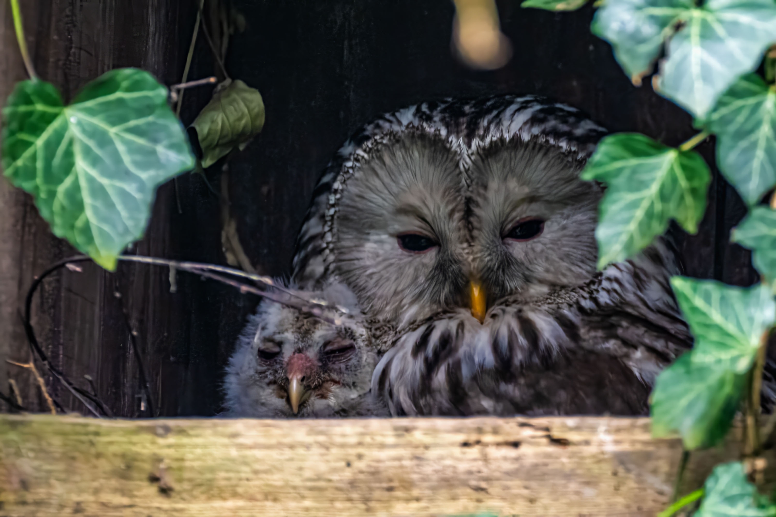Seit vier Jahre lebt ein Pärchen Habichtskäuze gemeinsam mit einigen weiblichen Schneeeulen in der begehbaren „Eulen-Tundra“ im Familienzoo in der Grafschaft Bentheim. Das Team des Tierparks freut sich nun sehr über den allerersten Nachwuchs der Habichtskäuze. Anfang Mai hatten die Tierpfleger den ersten Hinweis darauf, dass sich bei dem brütenden Paar etwas verändert hat, denn die angenommenen Futterportionen wurden größer. Einige Wochen später bestätigte sich dies endgültig – der kleine, flauschige „Mitesser“ zeigte sich erstmals an der Öffnung zur Bruthöhle. Die Habichtskäuze waren damit erstmals zu dritt. „Das besondere an unseren Eulen ist, dass uns dieses Zuchtpaar von der Österreichischen Vogelwarte für die Teilnahme an deren Habichtskauz- Wiederansiedlungsprojekt zur Verfügung gestellt wurde!“ so der zuständige Kurator Dr. Dirk Wewers. Es wurde vereinbart, dass alle Nachkommen dieses Paares im Wienerwald-Projekt ausgewildert werden. Die notwendigen Transporte können Dank des Artenschutzeuros vom Tierpark Nordhorn organisiert werden.