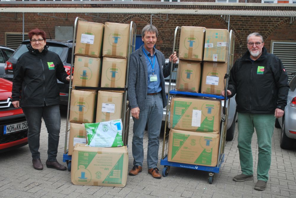 Auch Dr. Markus Kirschner, Vorsitzender des Ärztevereins Grafschaft Bentheim und Dr. Sigrid Leferink, Vorsitzende des Grafschafter Ärztenetzes, freuen sich über die Unterstützung durch den Tierpark. Die Spende kommt gerade zur rechten Zeit, da die Bestände durch die anhaltende Krise bald aufgebraucht sind, sagt Dr. Kirschner. Es ist für uns Ärzte eine tolle Erfahrung, diese Unterstützung zu bekommen und macht uns Mut, diese Krise gemeinsam zu meistern, ergänzt Frau Dr. Leferink.