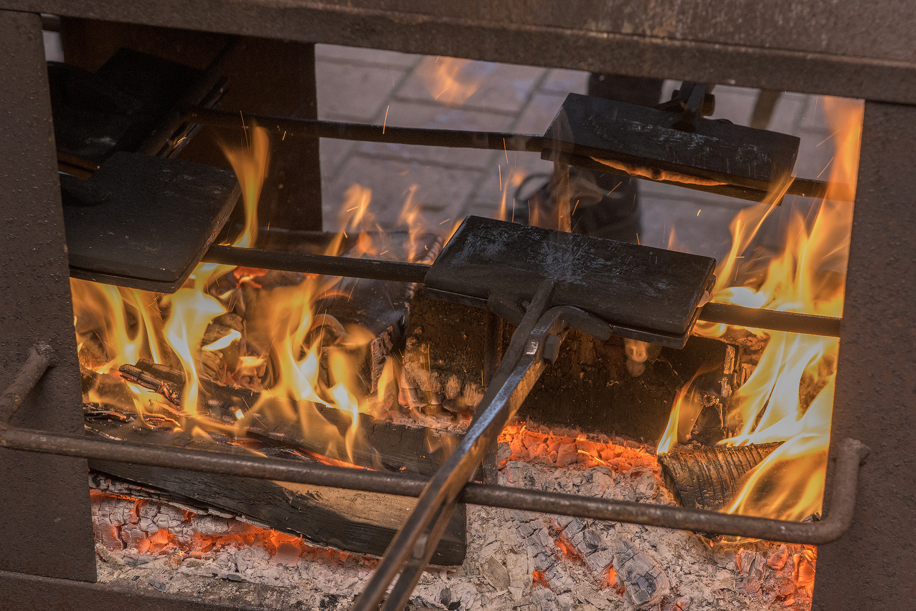 Schuhsohlen – Wer isst schon Schuhsohlen!? Doch tatsächlich, in der deutsch-niederländischen Grenzregion der Grafschaft Bentheim ist der alte Brauch des „Schoosollenbackens“ – auf hochdeutsch „Schuhsohlen backen“ – auch heute noch lebendig! Schon seit Jahrhunderten werden an kalten Wintertagen und besonders zur Jahreswende in der Grafschaft Bentheim „Schoosollen“ gebacken. Familie, Freunde und Nachbarn treffen sich, um mit uralten Waffeleisen am offenen Feuer die schmackhaften Waffeln herzustellen und am besten sofort frisch und knackig zu genießen.