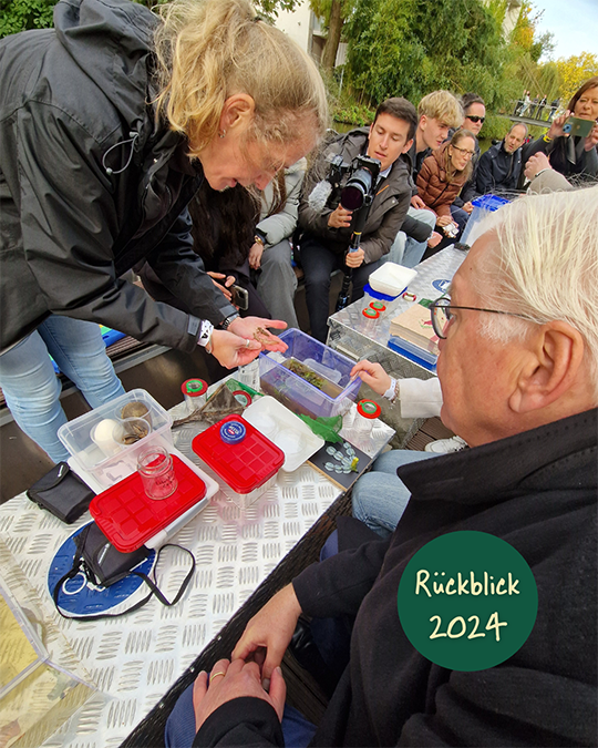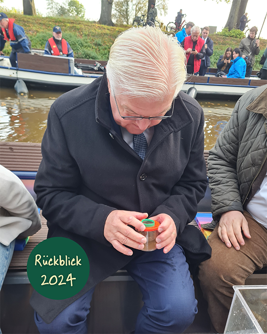 Mit Ferngläsern und Keschern ausgerüstet, hatten alle Teilnehmer die Möglichkeit, die Vechte und ihre Bedeutung als Lebensraum selbst zu erforschen. Auch der Bundespräsident beteiligte sich aktiv an der Tour und zeigte sich beeindruckt von unserem Engagement.