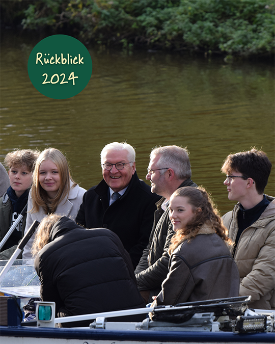 Im Oktober durften wir einen ganz besonderen Gast bei uns begrüßen: Bundespräsident Frank-Walter Steinmeier. Gemeinsam mit den Schülerinnen und Schülern des Evangelischen Gymnasiums Nordhorn (EGN) nahm er an einer Vechte-Rangertour teil und entdeckte die vielfältige Tier- und Pflanzenwelt der Vechte aus einer einzigartigen Perspektive. Dieses Programm ist ein Bestandteil unseres umfangreichen Bildungsangebots und vermittelt spannende Einblicke in die ökologische Bedeutung des Gewässers. 🌿🐟