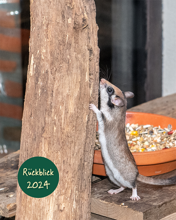 Gartenschläfer (Eliomys quercinus) sind nachtaktive Bilche, die in der Regel Winterschlaf halten. Sie können gut klettern, weit springen, und ihr schwarzes Gesicht erinnert an „Zorro“. Mit einer Reduzierung von rund 50% der Population sind Gartenschläfer von einem massiven Rückgang ihres Vorkommens betroffen. Deutschland ist das Hauptverbreitungsgebiet, weshalb der Rückgang hierzulande auch Auswirkungen auf die Bestände der gesamten Art hat. Mit unserem Nachttierhaus konnten wir die kleinen Bilche bereits nachzüchten und, dank der Beteiligung an Monitoring-Projekten, wertvolle Erkenntnisse zu dieser noch wenig erforschten Tierart beitragen.