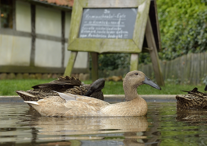 Auf der Wiese am Heuerhaus lebt eine Entenrasse mit einem namengebenden, auffällig gekrümmten Schnabel. Nach alten Aufzeichnungen wurden die Krummschnabelenten aus den nordholländischen Weißlatzenten gezüchtet und in den achtziger Jahren des 20. Jahrhunderts nach Deutschland gebracht.