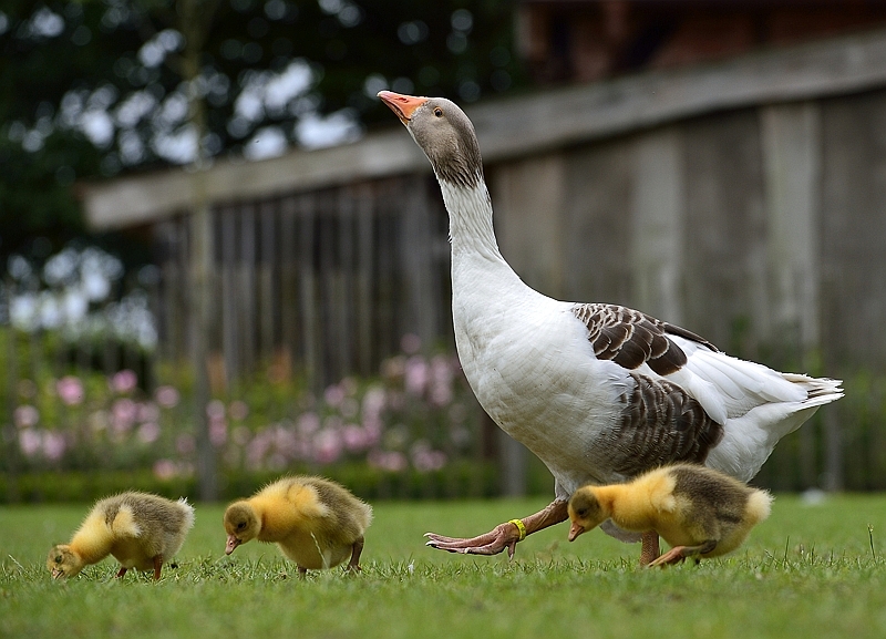 Die bunt gezeichneten Twentsen Landgänse stammen aus den Niederlanden. Sie sind eine Landrasse, die ohne das Interesse von Haustierfreunden wohl ebenfalls verschwinden würde. Der Tierpark beteiligt sich an dem niederländischen Erhaltungszuchtprojekt.