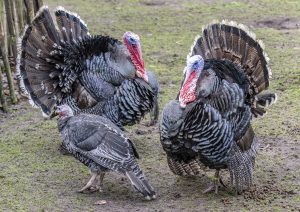 Die Bronzepute gilt als stark gefährdete Rasse und stammt ursprünglich aus Nord- und Mittelamerika. Sie ist dem Wildtruthuhn sehr ähnlich. Ihr schönen, schwarzen Federn schillern regenbogenartig.