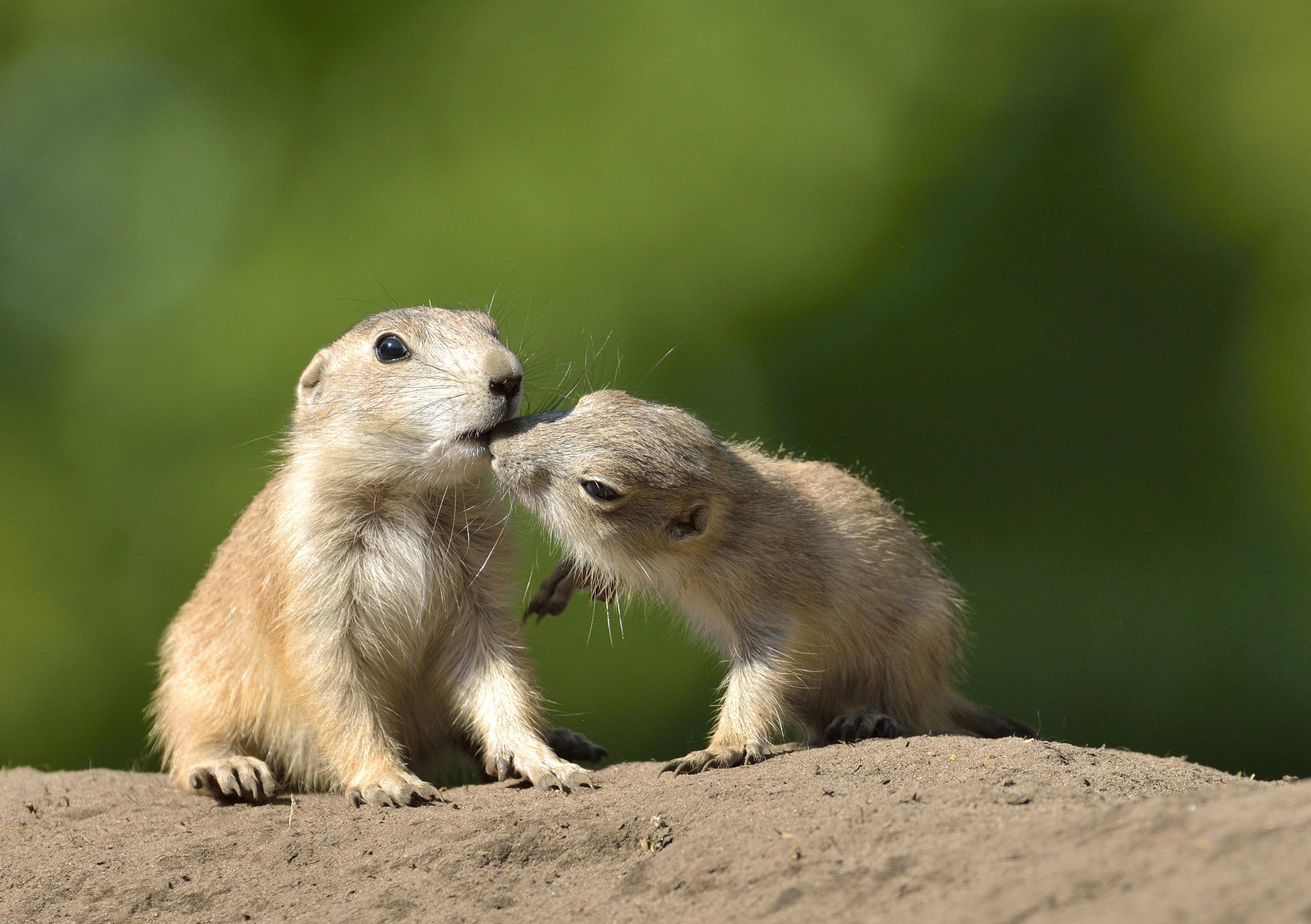 Frühestens Ende Mai sieht man bei den Schwarzschwanz-Präriehunden am Zooeingang die ersten kleinen Nasen aus den Höhlen schauen. Im Winter werden die Erdhörnchen nackt und blind in den Bauten unter der Erde zur Welt gebracht. Erst viele Wochen später trauen sie sich dann zum 1. Mal an die frische Luft. Weit mehr als 20 kleine Präriehunde wurden in diesem Jahr in dem für Besucher zugänglichen Gehege gezählt. Dass sie ziemlich neugierig sind, beweisen sie, wenn man mit am Eingang erhältlichem Tierfutter in die Anlage geht und es auf der ausgestreckten Hand anbietet. Wenn der Appetit auf die schmackhaften Heupellets groß ist, holen sich die Präriehunde die Leckerbissen direkt von der Hand der geduldigen Zoobesucher.